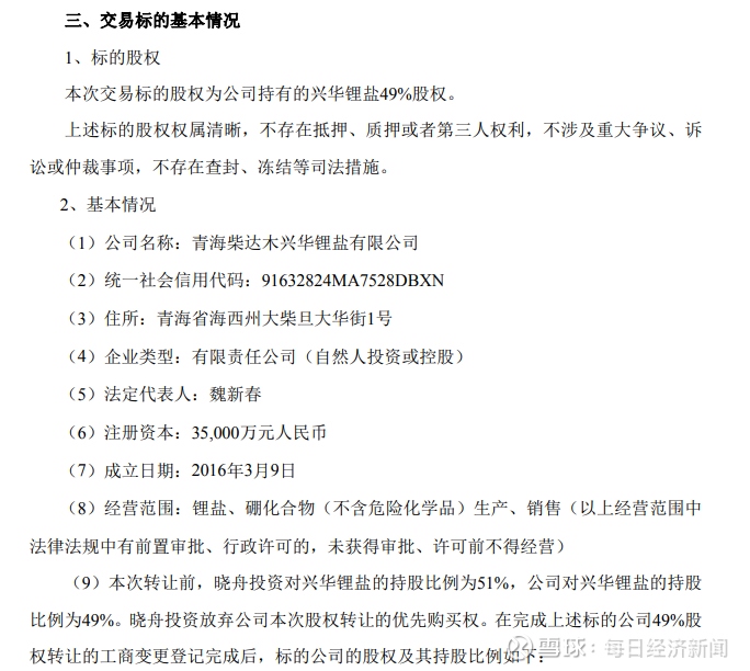 兴华公司是一家盐湖提锂企业,公司附近有著名的旅游景点大柴旦翡翠湖,还有中国大型盐湖察尔汗盐湖。根据粤开证券的一份研报,该公司的锂盐产能有1万吨。2023年、2024年,兴华公司因为多起环保违规行为被罚款。天眼查显示,兴华公司的两大股东分别是深圳市晓舟投资有限公司和亿纬锂能。记者注意到,亿纬锂能8月22日公告称,公司与西藏硕贝德控股有限公司(以下简称“硕贝德控股”)签署《股权转让协议》,将兴华公司49%的股权,按照6亿元的价格转让给硕贝德控股。本次交易完成后,亿纬锂能将不再持有兴华公司的股权。