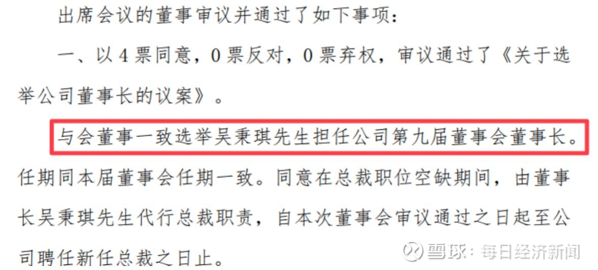 公告提到,在总裁职位空缺期间,吴秉琪代行总裁职责,自本次董事会审议通过之日起至公司聘任新任总裁之日止。