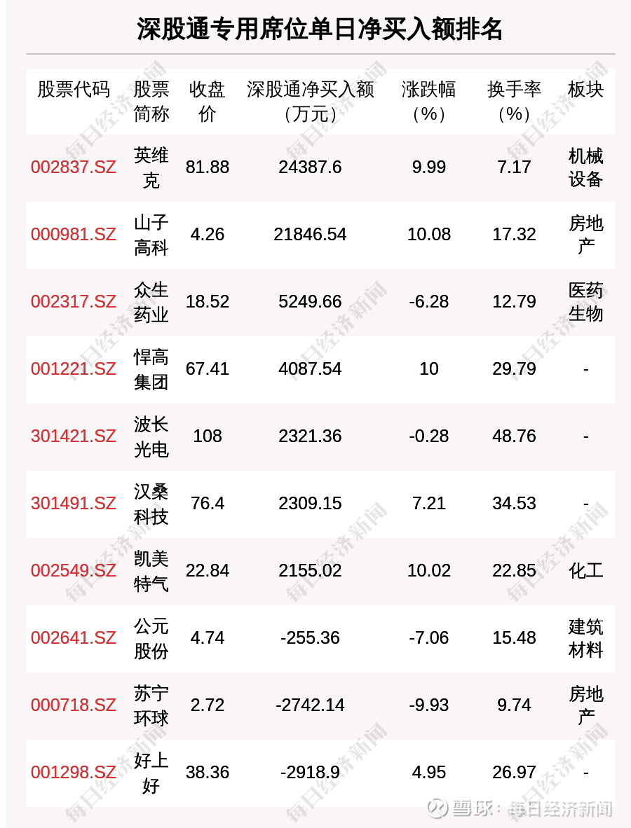在龙虎榜中,涉及深股通专用席位的个股有14只,英维克的深股通专用席位净买入额最大,净买入2.44亿元。