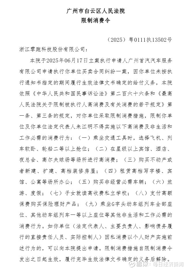每日经济新闻综合零跑汽车官微、中国执行信息公开网、公开资料、天眼查