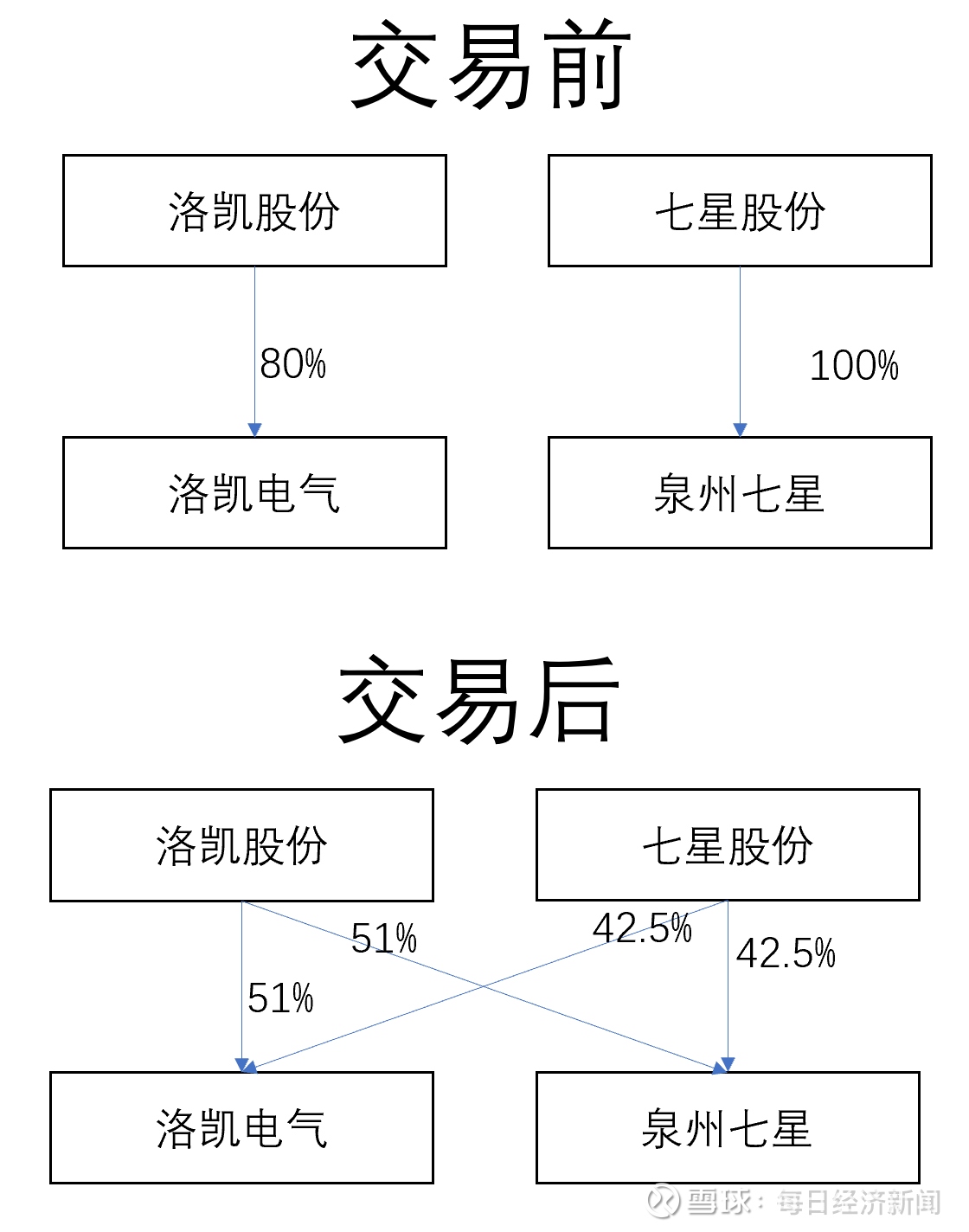 交易完成后,洛凯股份对泉州七星持股51%,七星股份对泉州七星持股42.5%,洛凯股份对洛凯电气持股51%,七星股份对洛凯电气持股42.5%。