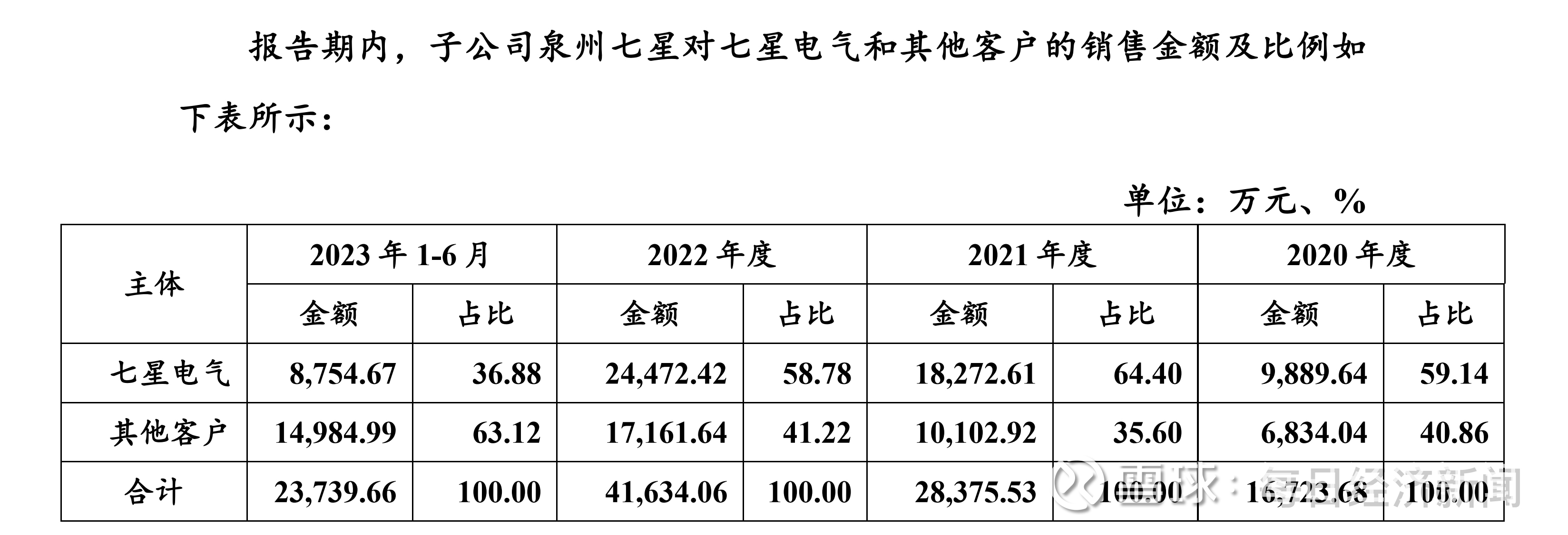 然而,泉州七星的销售收入有很大一部分是源于其向七星股份的关联销售。据上海市广发律师事务所(以下简称广发所)在洛凯股份发行可转债时出具的法律意见,2020年至2023年上半年,泉州七星皆存在对七星股份的大额销售。