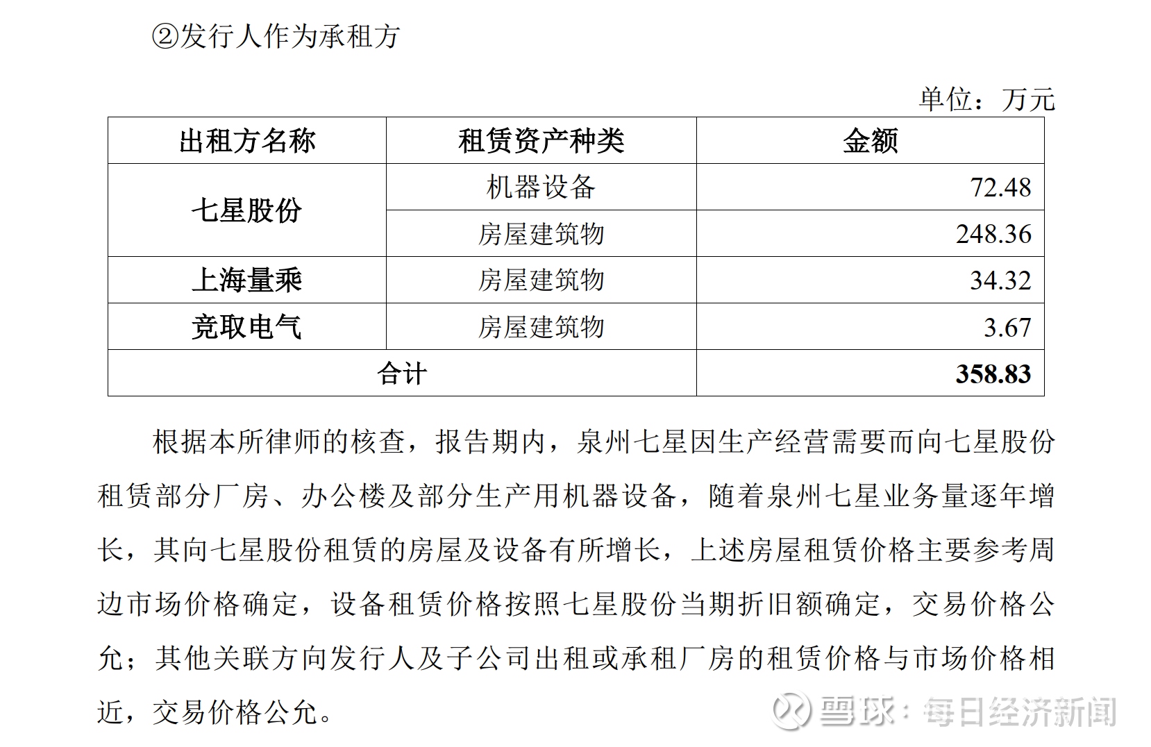 泉州七星此前仍向七星股份租赁部分厂房及机器设备记者进一步调查发现,洛凯股份收购泉州七星后,又向七星股份租赁生产场地。