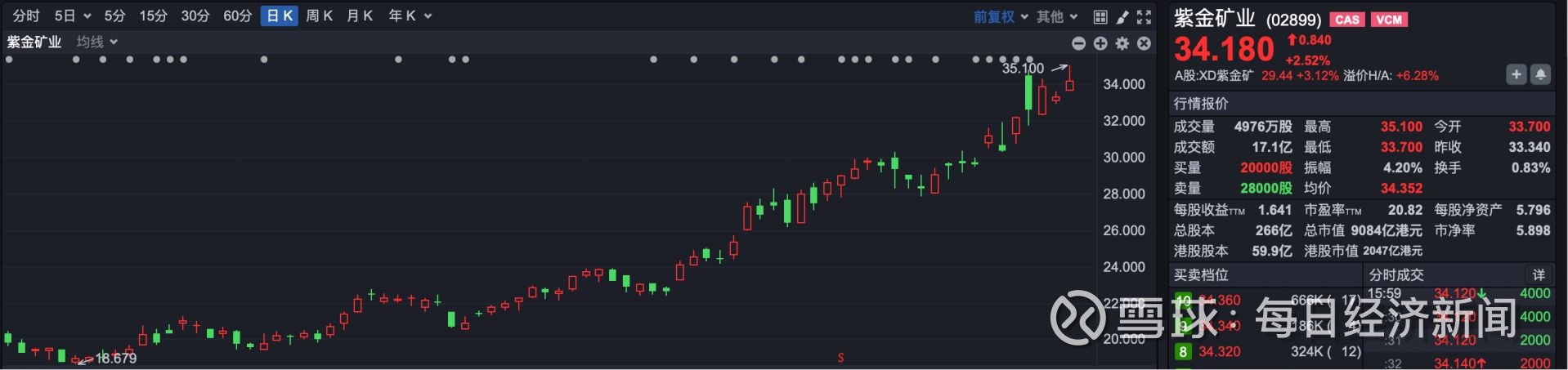 焦点板块,贵金属板块逆势上行。其中,中国白银集团(00815.HK)涨超14%,珠峰黄金(01815.HK)涨超11%。此外,山东黄金(01787.HK)涨超5%,招金矿业(01818.HK)涨超3%,紫金矿业(02899.HK)涨超2%,均创出历史新高。其他个股,潼关黄金(00340.HK)、洛阳钼业(03993.HK)等涨超1%。