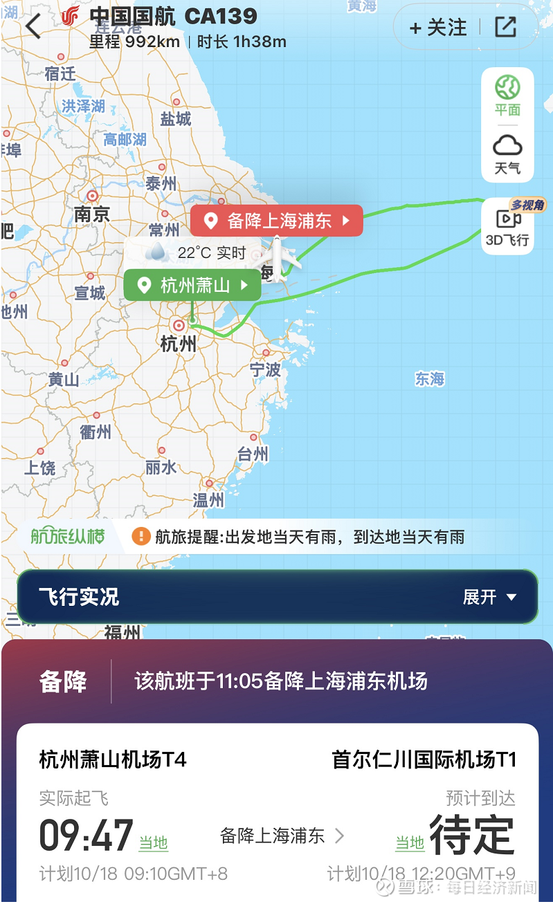 10月18日,@中国国际航空 通报:由杭州飞往仁川的CA139航班,一名旅客存放在行李架上手提行李内锂电池自燃,机组按程序立即处置,未出现人员受伤。为确保飞行安全,飞机已备降上海浦东机场。国航已调配飞机继续执行该航班任务。