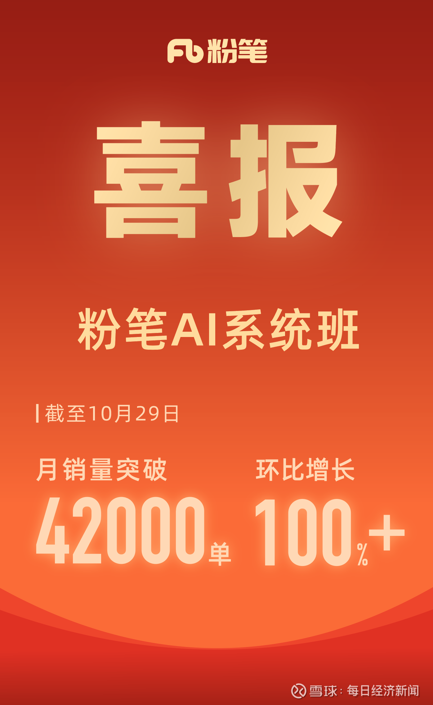 今日,国内职业教育赛道头部企业粉笔(02469.HK)宣布,截至10月29日,旗下AI刷题系统班销量突破42000单,实现里程碑式突破,环比增长超100%,展现其AI教育产品的强劲市场吸引力。