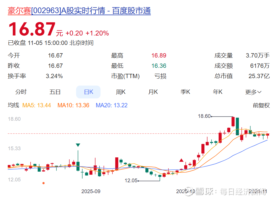 值得一提的是,尽管业绩不太行,但豪尔赛今年股价却表现不俗,10月单月涨超24%,年初至今涨超47%。