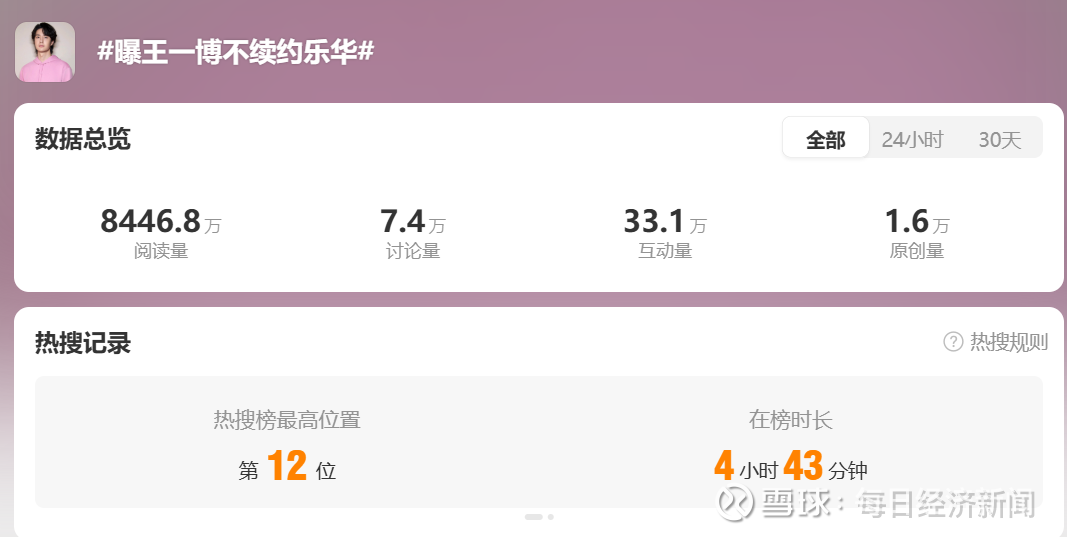 乐华娱乐投资者关系部门在接受媒体采访时表示:“他(王一博)与公司的合约原本也要到明年才到期,到时候请看我们官方的宣布。”对于乐华娱乐2024年报及2025年中报显示,王一博贡献公司约62.3%的营收、推动乐华上市并持续支撑股价一事,该部门则回应称,王一博在公司的收入占比正逐步下降。