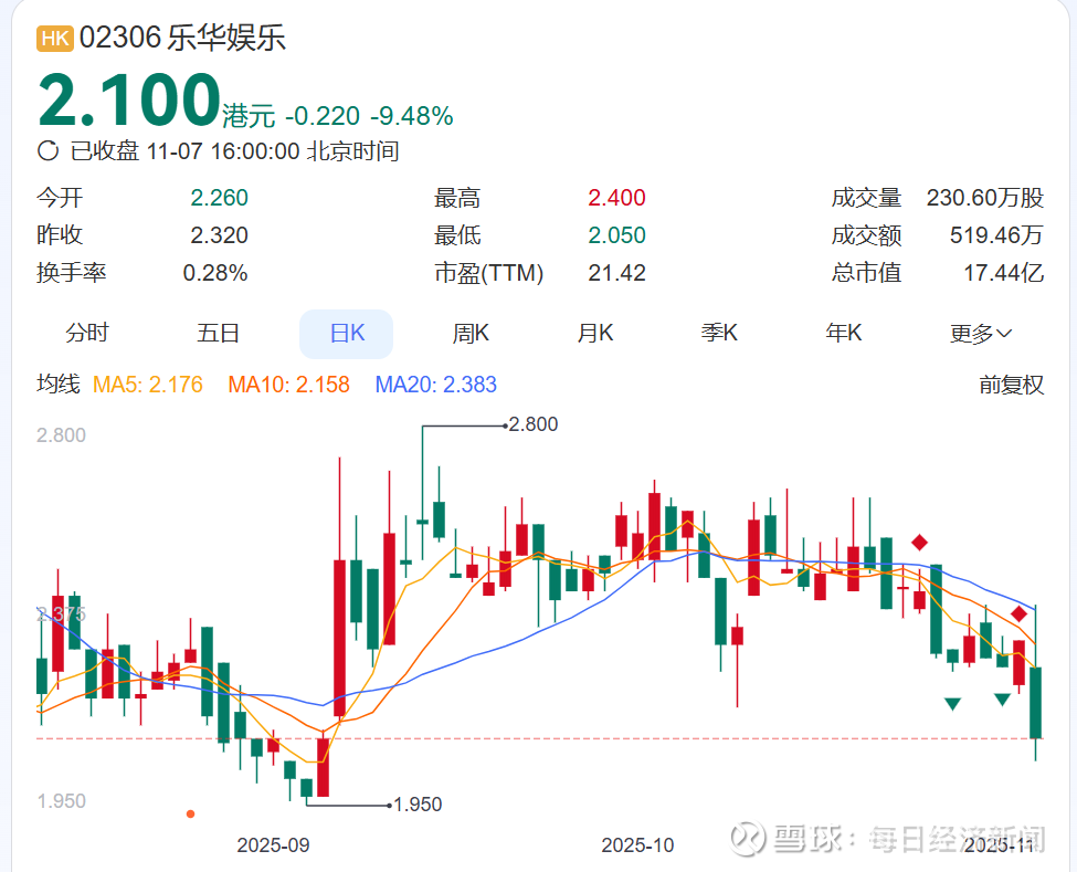 11月7日,乐华娱乐股价暴跌,截至收盘跌9.48%。今年下半年,乐华娱乐股价持续下跌,10月份跌幅达12.69%,今年6月20日至今跌幅超40%。