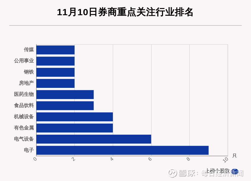 从券商对行业的关注度来看,券商关注个股数居前的行业分别是电子、电气设备、有色金属。
