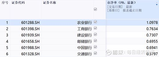 分银行类型来看,国有银行中农业银行为1.1,工商银行为0.76,中国银行为0.69,建设银行为0.73,交通银行为0.58,邮储银行为0.7。