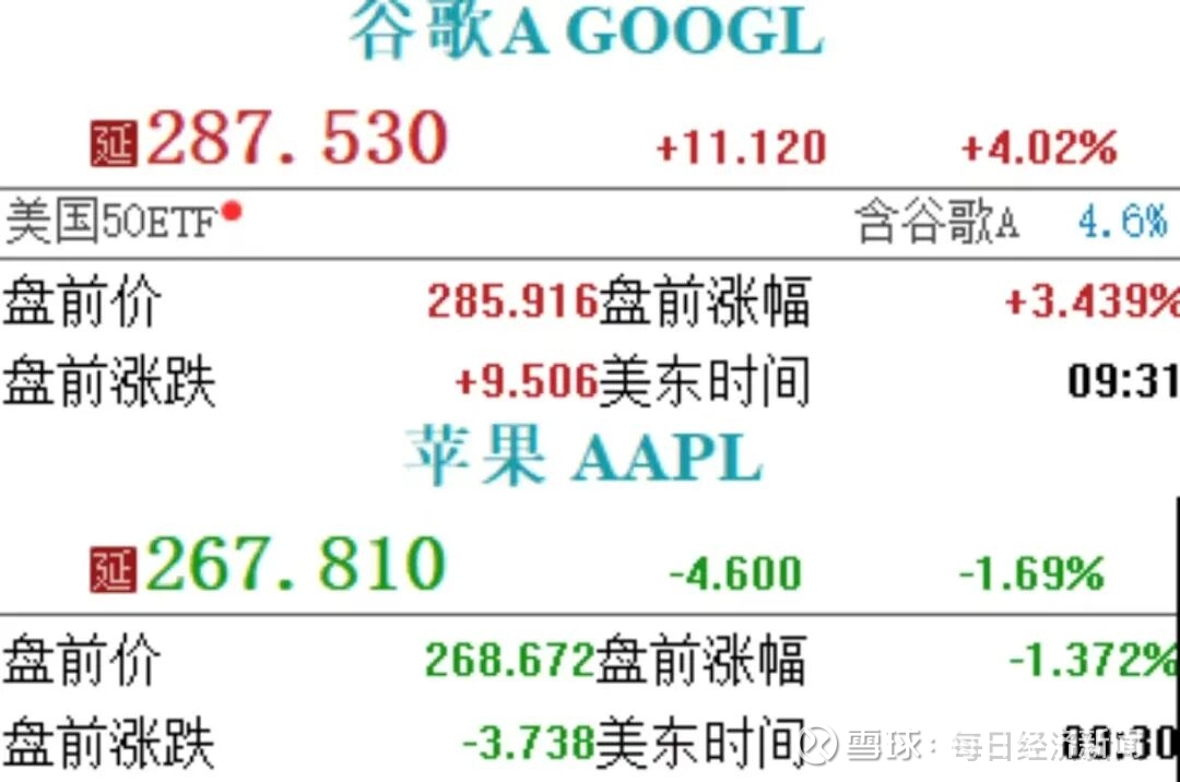 二级市场上,截至发稿,谷歌(GOOGL.US)涨超4%,苹果(AAPL)跌约1.6%。