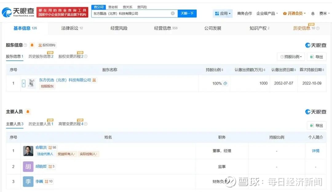 值得注意的是,目前,东方甄选科技母公司东方优选(北京)科技有限公司尚未发生变更,孙东旭仍为法定代表人、执行董事、经理。