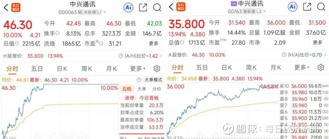 此前,受“豆包助手”手机发布的影响,中兴通讯A股及H股股价大涨,12月1日,A股封住涨停板,报收46.3元/股,港股大幅上涨,最终收报35.8港元/股,涨幅13.94%,总市值突破2100亿元。