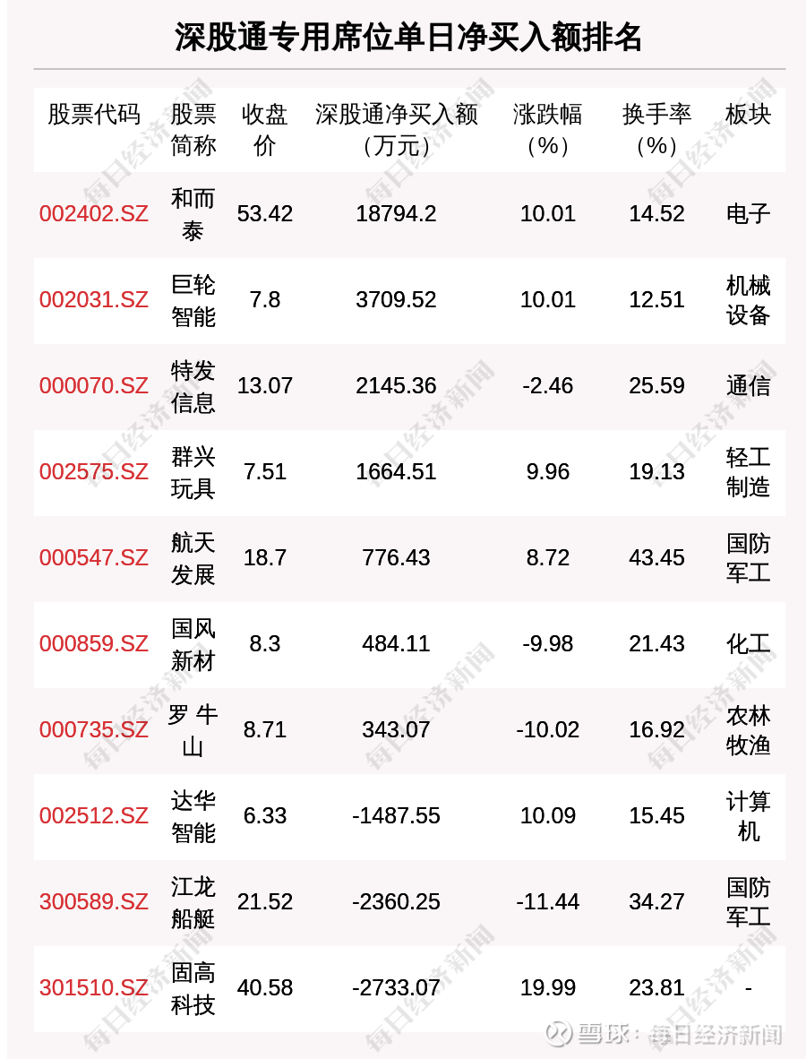 在龙虎榜中,涉及深股通专用席位的个股有12只,和而泰的深股通专用席位净买入额最大,净买入1.88亿元。