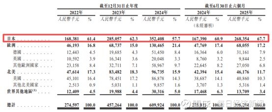 记者注意到,卧安机器人的主营业务具有鲜明的“出海”特征。2022年~2024年和2025年上半年(以下简称报告期),公司来自日本、欧洲及北美市场的合计收入占总营收的比例分别为95.5%、95.6%、95.0%及96.6%。