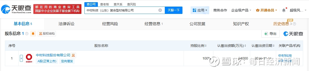 每经AI快讯,天眼查工商信息显示,近日,中材科技(山东)复合型材有限公司成立,法定代表人为程涛,注册资本2.4亿元人民币,经营范围包括高性能纤维及复合材料制造、高性能纤维及复合材料销售、玻璃纤维增强塑料制品制造等。股东信息显示,该公司由中材科技(002080)全资持股。