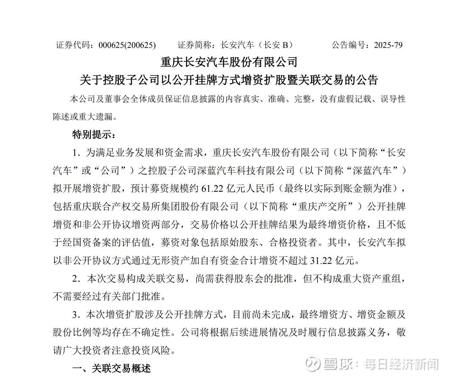 图片来源:长安汽车公告
