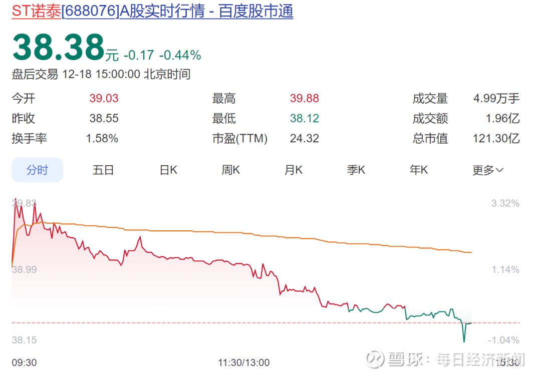 截至12月18日收盘,ST诺泰跌0.44%,报38.38元/股。总市值121亿元。