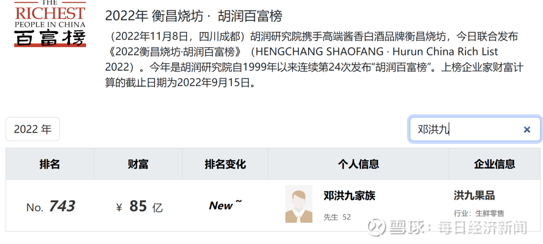 也就是在2022年,邓洪九以85亿元身家登上胡润百富榜。