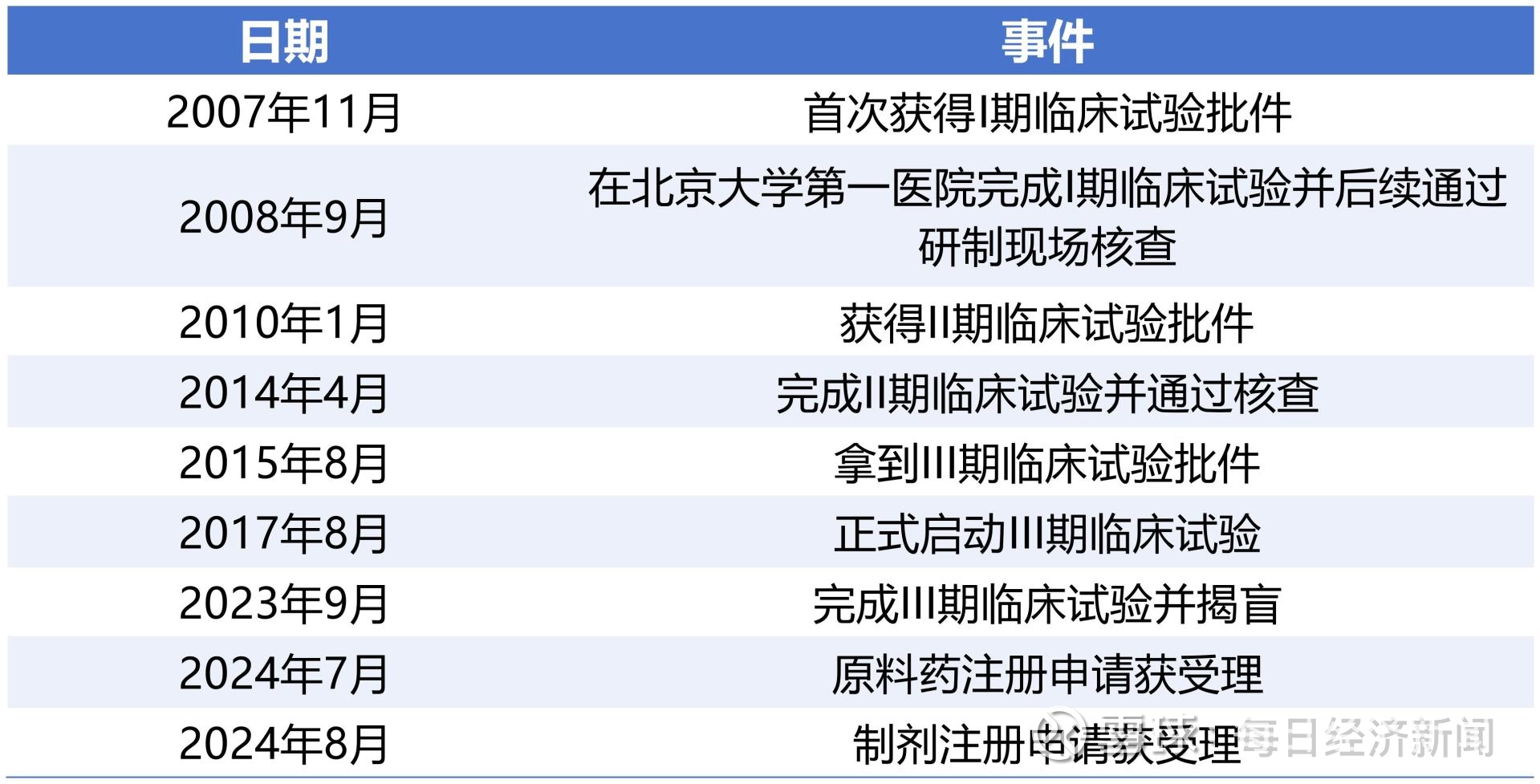 琥珀八氢氨吖啶片的整个临床阶段横跨近17年 记者根据公开资料制图
