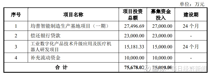 公开信息显示,均普智能2022年IPO募集资金总额15.6亿元,其中超募为6.69亿元。公司IPO募集资金原计划用于均普智能制造生产基地项目(一期)、工业数字化产品技术升级应用及医疗机器人研发项目、偿还银行贷款及补充流动资金等。