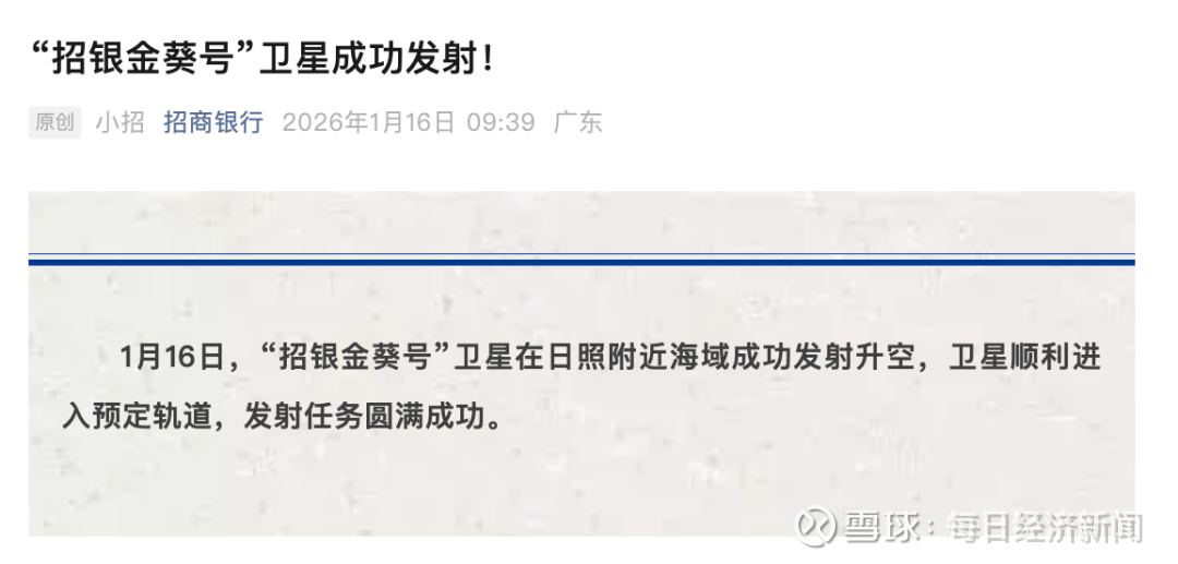 此次为招商银行发射的第3颗卫星,“招银1号”“招银2号”分别在2024年12月和2025年3月发射,招商银行此前称,通过卫星数据,招行能够更好地监测市场动态、优化风险管理,并为客户提供更精准的金融产品和服务。