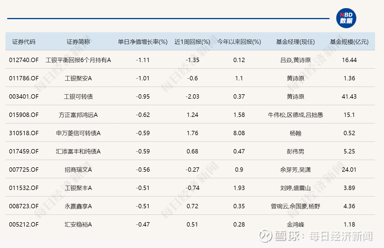 3.单日债基涨跌幅榜