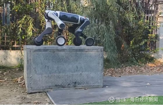 在杭州云深处这家公司后院,大家正围着一只机器狗观看表演。面对钢铁高台,机器狗一跃而上,动作灵巧自如,宛如一只正在接受训练的真猎狗。