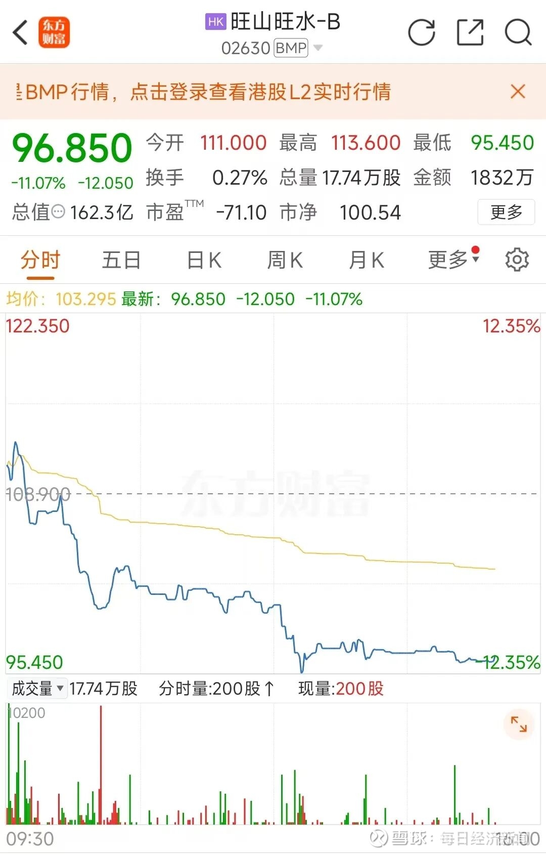 市场方面,旺山旺水股价今日下跌近11%,昨日盘中曾一度大涨近15%。截至发稿,报96.85港元/股。