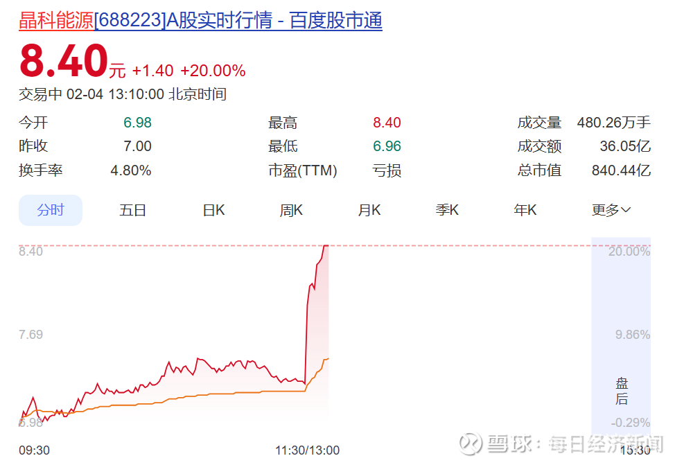2月4日午后,光伏板块集体上涨,晶科能源股价直接涨停。