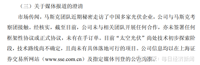 此外,受马斯克团队调研消息影响,今日太空光伏概念股全线走强。盘后,A股多家公司就太空光伏相关业务发布公告: