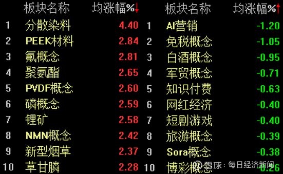 板块方面,中药概念高开高走,盘龙药业、特一药业双双涨停。分散染料概念股盘中拉升,闰土股份涨停,锦鸡股份、浙江龙盛、百合花等涨幅居前。