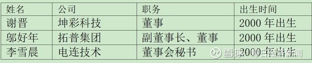 此外,记者查询到,已有多位“00后”在上市公司担任董监高职务,以下为不完全统计: