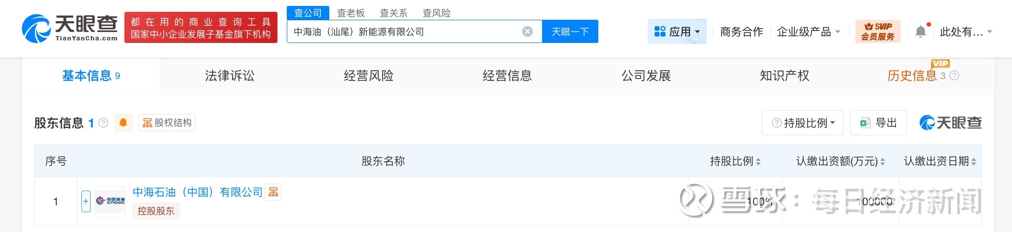 每经AI快讯,天眼查工商信息显示,近日,中海油(汕尾)新能源有限公司成立,法定代表人为张传涛,注册资本10亿元人民币,经营范围含合同能源管理,发电业务、输电业务、供(配)电业务,输电、供电、受电电力设施的安装、维修和试验等。股东信息显示,该公司由中海石油(中国)有限公司全资持股。