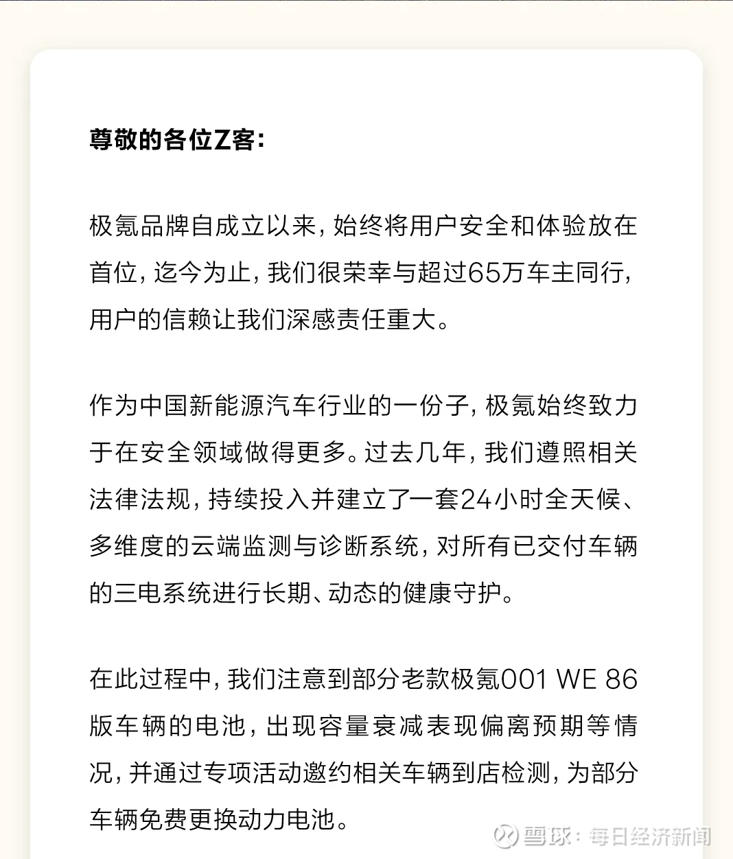 2月9日当晚,极氪汽车在其官方公众号也发布了相关说明。