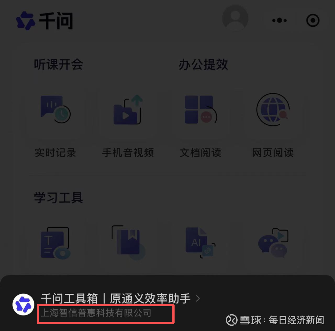 值得一提的是,“千问工具箱|原通义效率助手”小程序曾被微信提示风险。据了解,千问工具箱的运营方与千问APP相同,均为阿里旗下上海智信普惠科技有限公司。