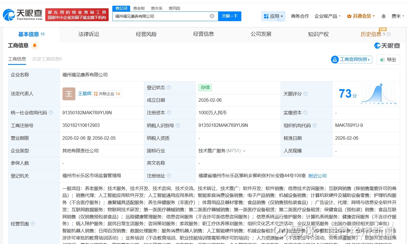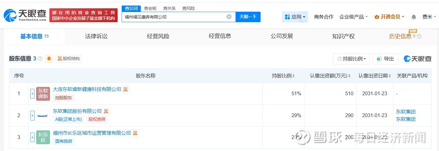 每经AI快讯,天眼查App显示,近日,福州福见康养有限公司成立,法定代表人为王星辉,注册资本1000万元人民币,经营范围包括养老服务、人工智能应用软件开发、人工智能通用应用系统等,由东软集团(600718)、大连东软睿新健康科技有限公司、福州市长乐区城市运营管理有限公司共同持股。
