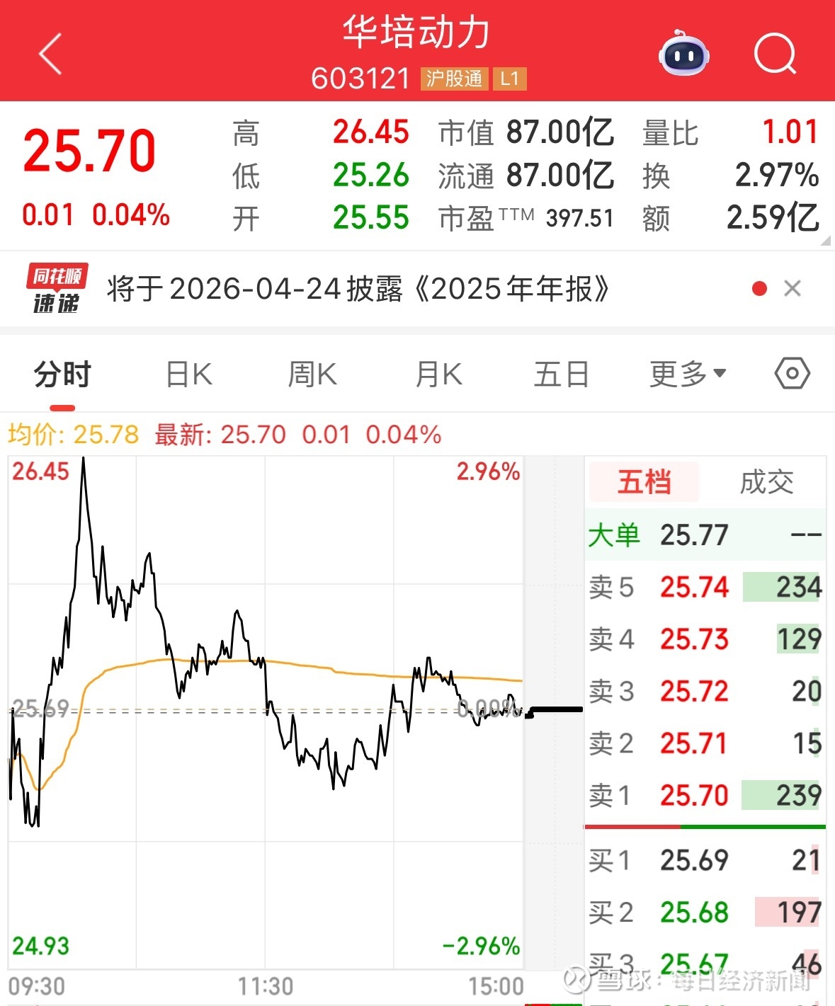 此前华培动力发布业绩预告称,预计2025年度实现归属于母公司所有者的净利润为-4700万元到-2700万元。