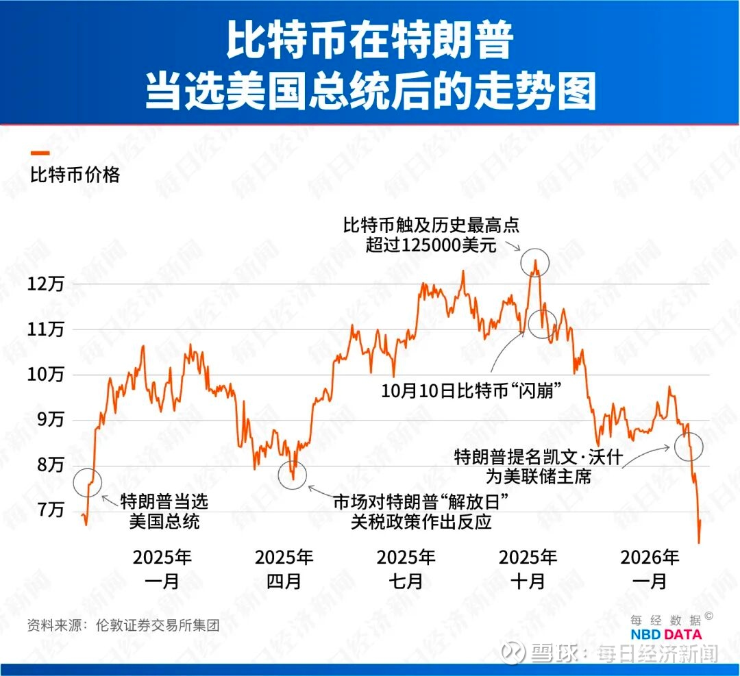 曾被誉为“数字黄金”的比特币,其价格从2025年10月超过12万美元的历史高位断崖式下跌,一度跌破6万美元关口。单在2026年初至今,其累计跌幅已超23%,现报66457美元/枚。