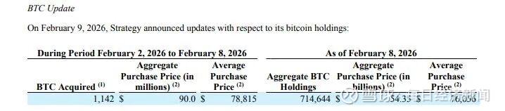 据媒体报道,Strategy在2月第一周,依然以约7.8万美元的均价逆势增持了1142枚比特币,耗资约9000万美元。截至目前,该公司持有比特币714644枚。