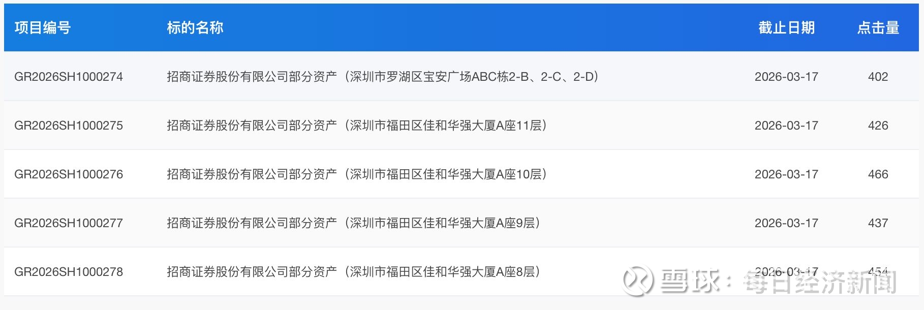 根据上海联合产权交易所官网披露,招商证券正在出售旗下5处房产,合计出售价格约为1.48亿元,挂牌时间为2026年2月11日至2026年3月17日,这5处房产均位于深圳市。