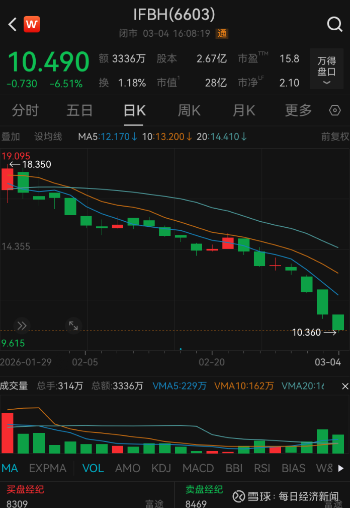 目前IFBH每股报10.49港元,总市值28亿港元。而IFBH上市首日的收盘市值为105.3亿港元,意味着其自上市以来市值已蒸发77.3亿港元。