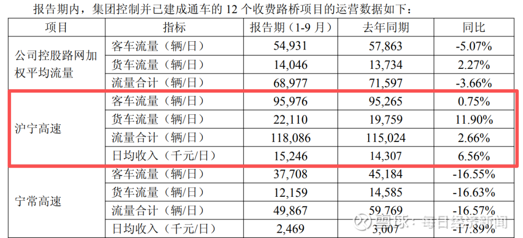 据宁沪高速2025年三季报,2025年1—9月,沪宁高速客车和货车日均流量高达11.8万辆,较2024年同期增长2.66%。