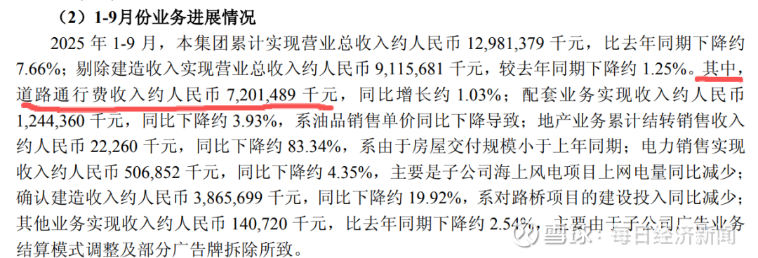 尽管如此,道路通行费收入作为公司的绝对支柱,2025年前三季度贡献了高达72亿元的收入,同比增长1.03%。