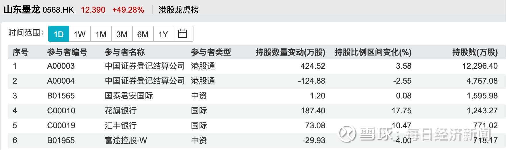 Wind数据显示,3月2日当天,净买入山东墨龙H股金额最多的两家券商席位分别为花旗银行和汇丰银行。其中,花旗银行净买入678.53万股,买入后持有1275.52万股。而汇丰银行当天净买入102.63万股,买入后持有1548.66万股。