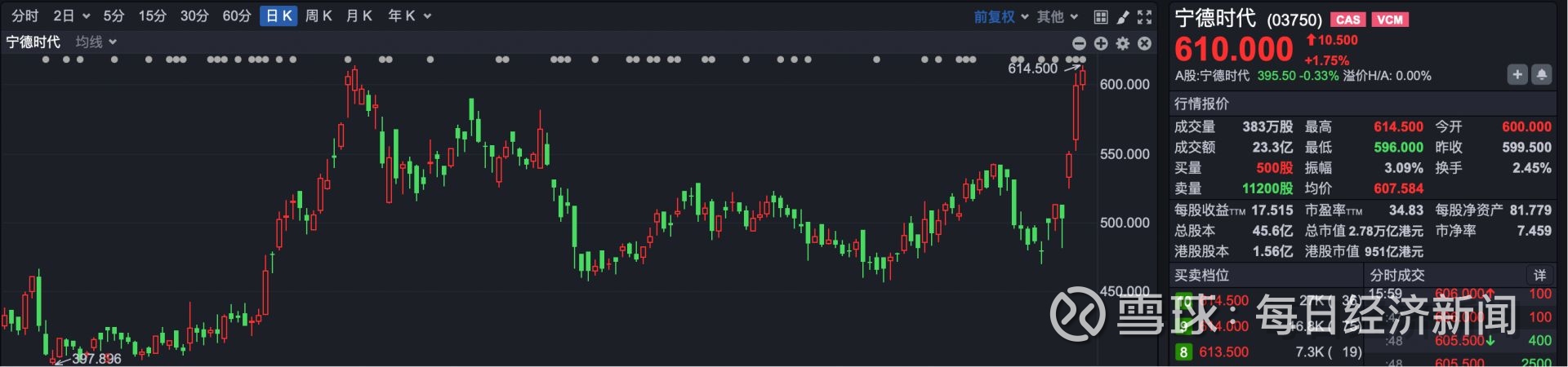 焦点公司方面,宁德时代(03750)逆势上涨1.75%,创下其在港股上市以来的历史新高。