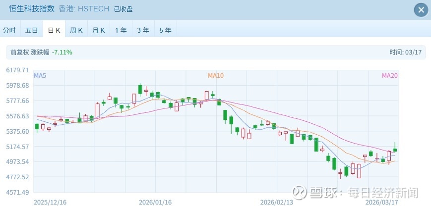 今日(3月17日),港股市场在隔夜美股走强、前一交易日大幅反弹后进入震荡整固阶段,主要指数窄幅波动,盘面呈现结构性行情。本地券商、AI(人工智能)Token(词元)题材成为全天亮点,科技股涨跌互现,大市交投保持活跃。