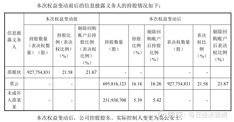 莫云持有的表决权足以对大北农股东会决议产生重大影响,因此,上市公司控股股东、实际控制人由邵根伙变更为莫云。若完成上述权益变动,莫云及邵某某作为一致行动人,合计持有大北农21.58%的股份。