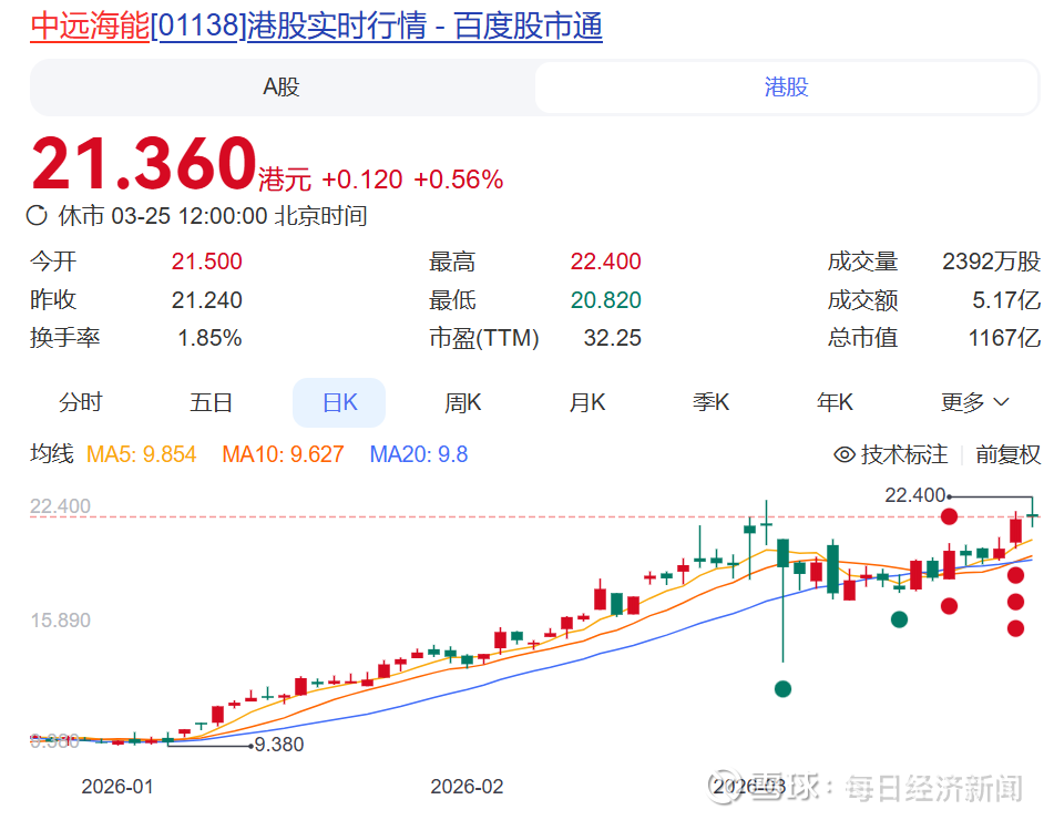 值得注意的是,今年以来中远海能股价暴涨,截至3月25日中午休市其AH股股价均已累计涨超120%。